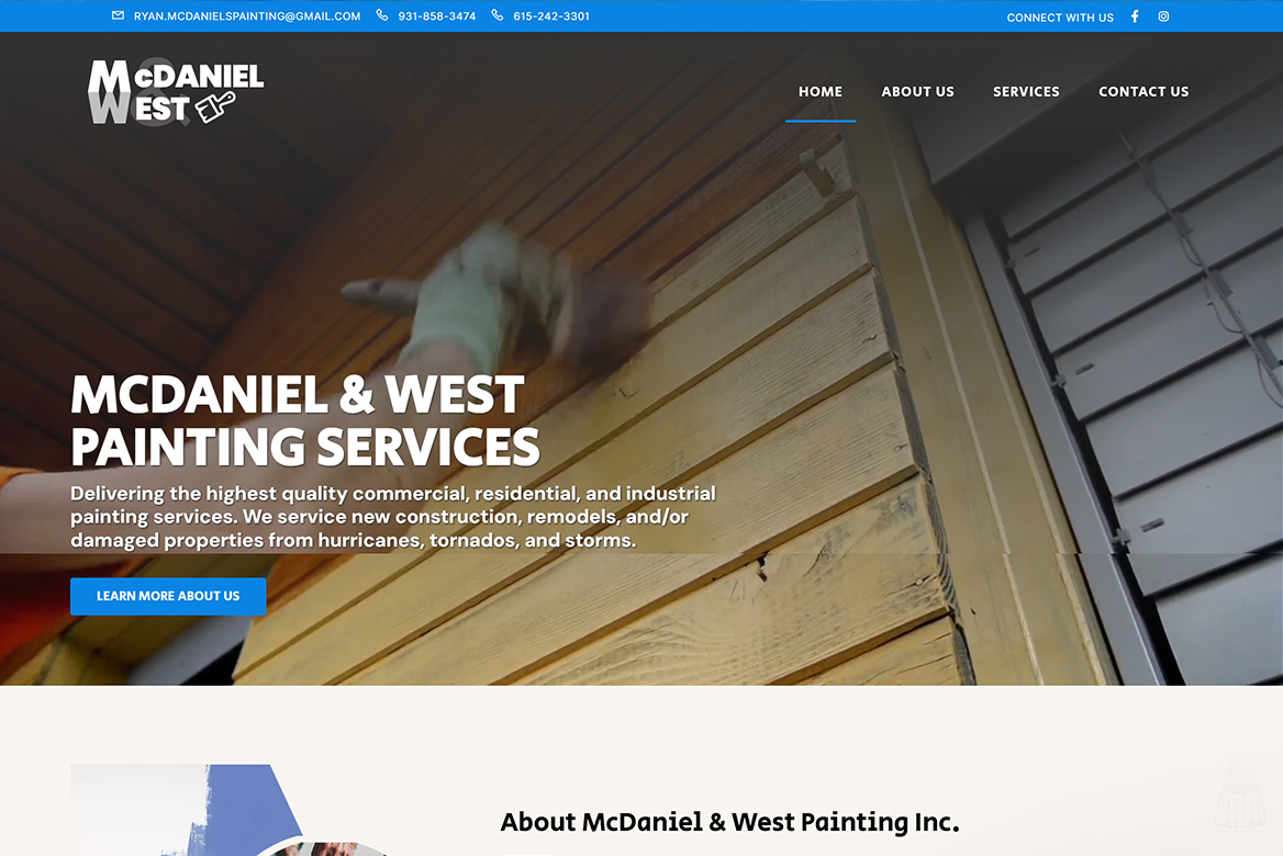 Before working with MFG Builders, McDaniel & West’s website communicated its services at a basic level, but it did not fully reflect the breadth of their offerings or how local customers search for painting contractors online. Core services such as residential painting, commercial painting, industrial coatings, and disaster restoration were present, but the site structure did not fully support search visibility for key terms that homeowners and businesses in Tennessee use when seeking trusted painters or restoration professionals. Without clearly defined service pages and locally relevant content, the site risked underperforming in search results for competitive terms like painting services in Cookeville, professional painters in Eastern Tennessee, or industrial painting contractors.